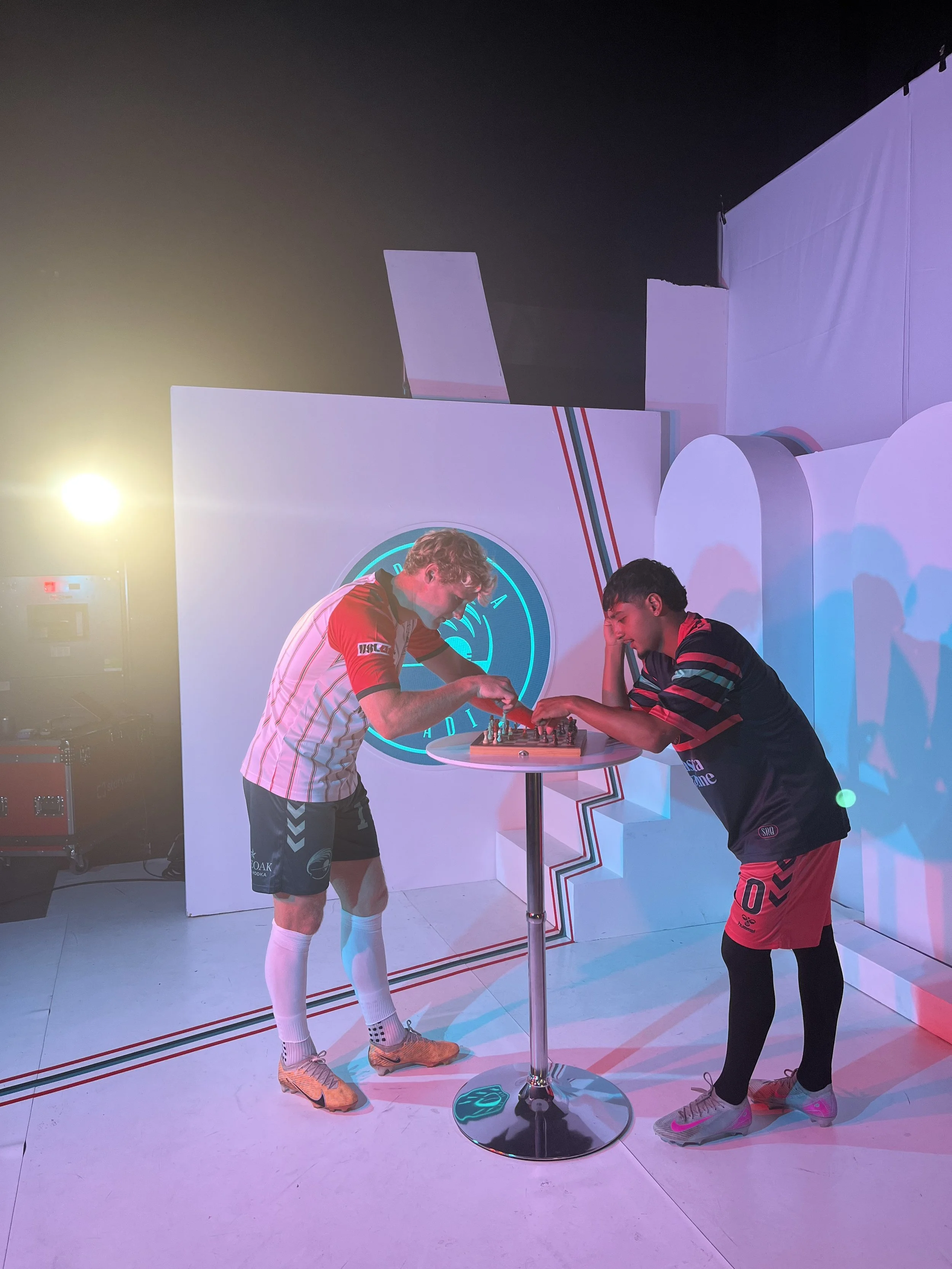 Storyvox teamed up with Sarasota Paradise to bring our own twist to their annual media day. We designed not one, not two, not three, but four custom studio sets inspired by the team’s new kits. Our team crafted each set to match the personality and amplify the colors and energy of the various uniforms. This provided every look with a distinct visual identity, making the players ooze with confidence, grit, and drive.